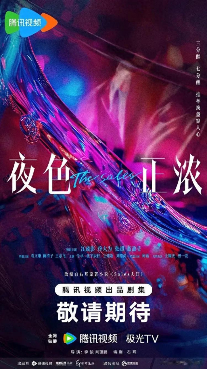 《夜色正浓》(别号《Sales爱妻》)是2026年开年热播的24集王人市职场情愫剧,改编自右耳演义,李骏、荆丽鹏执导,右耳编剧。