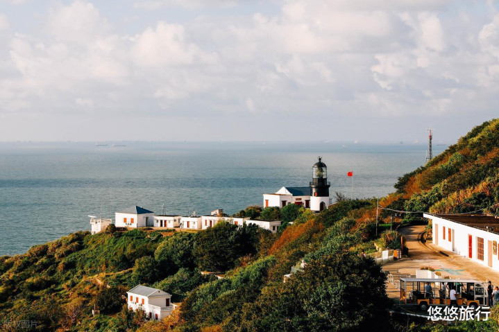 花鸟岛灯塔,在岛的最西边,傍晚看日落绝好意思,好天时海水呈淡蓝色。