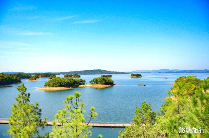 可自驾游湖,或是乘船登多个小岛,赏玩山光水色。