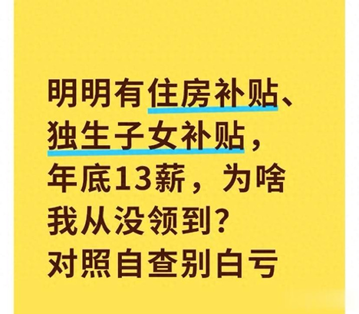 lol投注 明明有住房补贴、独生子女补贴, 年底13薪, 为啥我从没领到?
