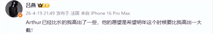4月19日晚,44岁内地超模、服装缠绵师吕燕在应付网更新动态共享两张近照,并配文写说念:“Arthur(小鲍)已经比我长的罕见了一些,但他的愿望是但愿来岁这本事要比我再罕见一大截”,子母二东说念主温馨同框,温馨满泻!