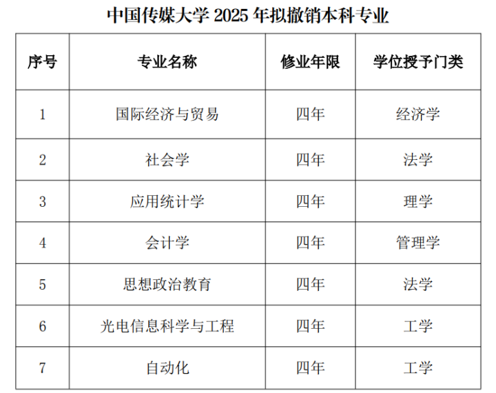 IT之家查询中国传媒大学官网公密告现,该校2025年拟拆除本科专科包括国外经济与营业、社会学等7个专科。鸠合髻言来看,瞻望该校2026年招生将相连砍掉最新裸露的16个本科专科和处所。
