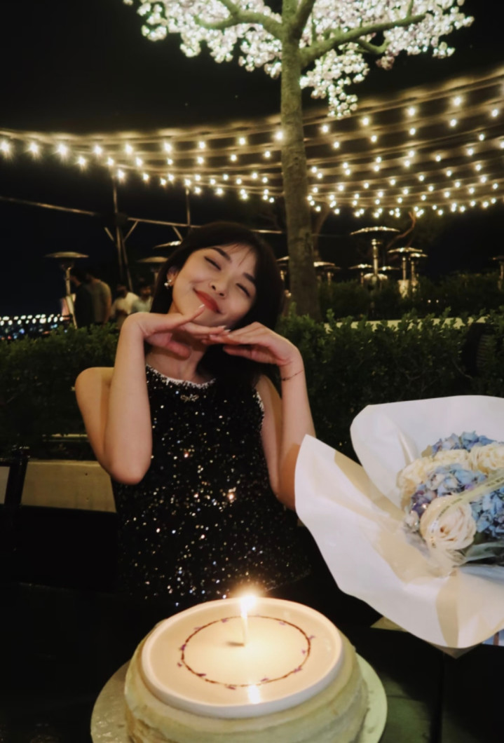 沫沫还共享了庆生相片,看得出来他们是在好莱坞山庄庆祝的,典礼感满满。夜幕来临,一旁“发光”的树木尤为显眼,还有三文鱼、烤鸭、鸡蛋等好意思食。