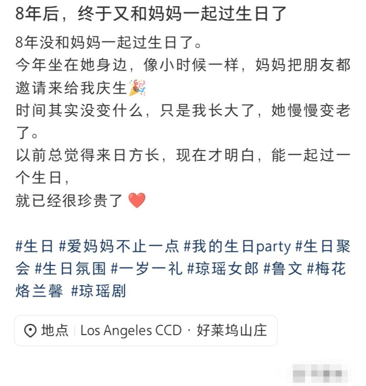 关于沫沫的寿辰,算作姆妈的鲁文畸形爱好。这不,鲁文邀请了一又友到场庆贺。今天(4月8日),沫沫晒出了庆生的动态。她说,时隔8年和姆妈一都过寿辰,像小期间那样。时辰其实没变什么,仅仅我长大了,她缓缓变老了。当年总认为畴昔方长,咫尺才明显,能一都过一个寿辰就仍是很罕有了。