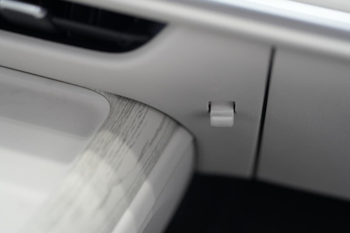 此外,前排的细节谋略和处理也格外到位,举例木纹的杯架,不啻是看上去高档,还在后方保留了空调最常用的A/C和除雾以及内/外轮回按钮,确保驾驶中可以盲操空调。顺着往右边看,给到了一个可开启的小挂钩,最大承重也标记出来了是3KG。
