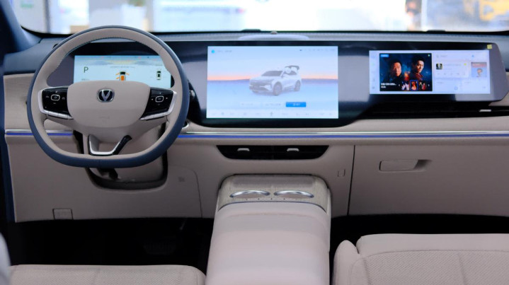 内饰部分,第四代CS75 PLUS蓝鲸超擎,主打一个质感的进步,统共这个词内饰给与多半的软材料包裹和木纹材质,加上双屏色的皮质观点盘,高档感此次是真给到位了,而且能看到此次前排是给到了三块屏幕,在副驾驶位置还有一个文娱屏,合作装备了腿托副驾驶推拿座椅,可以给到相称高的舒限度。