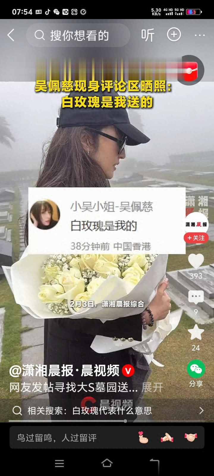 说到最近娱乐圈的小插曲,有点神秘又有点让人摸不着头脑。吴佩慈那天突然在社交平台发了句话,说她去大S的墓园,放上一枝白玫瑰。瞬间网络就炸锅了。这事儿光听开头就够反常的——大S人不是还活得好好的嘛?咋就扯上了墓园跟白玫瑰。