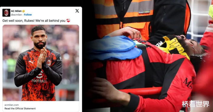 “AC 米兰通知,鲁本·洛夫特斯-奇克在比赛中遭逢严重面部外伤,导致颌骨牙槽突骨折。