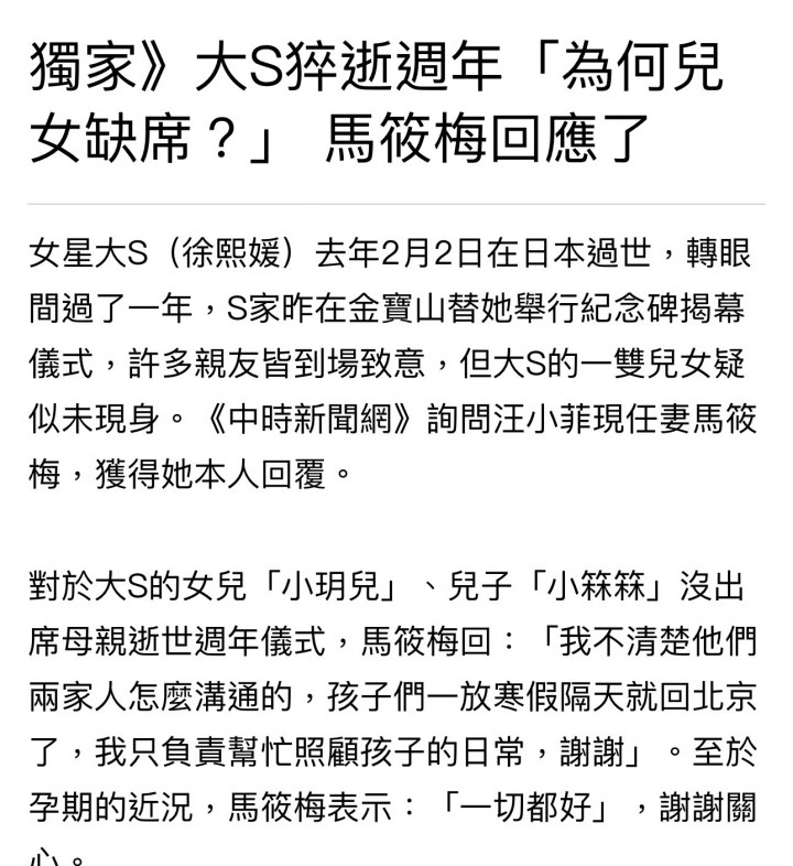 但小编觉得,S家既然要为大S举办一周年祭日仪式,想让两个孩子出席的话,不应该提前和汪小菲沟通协商吗?
