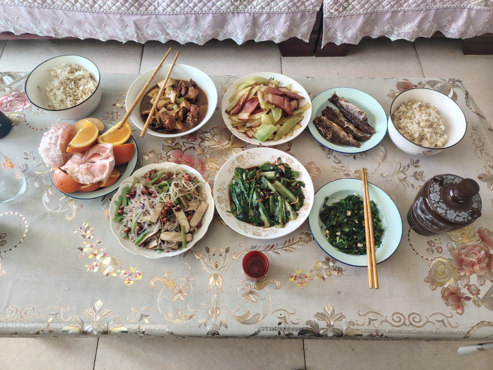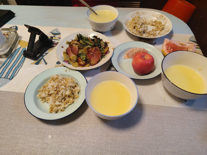 昨天的晚饭做了减法,吃了中午的杂粮饭和剩菜,喝了一小碗玉米糊。